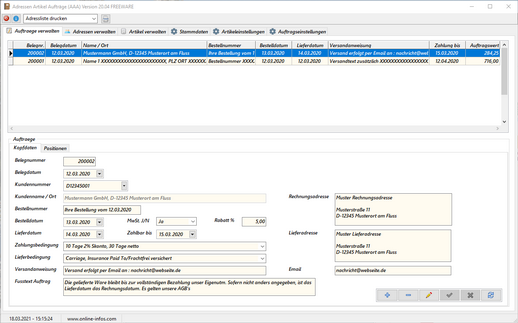 AAA - AufträgeArtikelAdressen : Wer nicht mehr braucht als eine einfache und komfortable Auftragsverwaltung, ist hier richtig.
