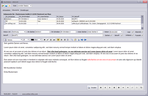 DocMaker - Document Maker : Erstellt professionell Dokumente wie z.B. Briefe, Fax, Aktennotiz, Lieferscheine, Rechnungen in wenigen Minuten und wird bei fortlaufender Nutzung automatisch zum Dokumentenarchiv.